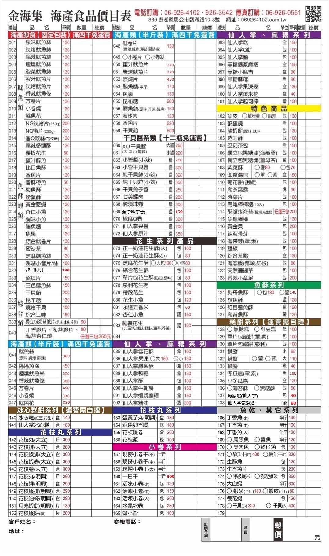 澎湖「金海集海產」原為經營海產批發之盤商,因品質穩定、價格公道,故於民國86年設立門市店面銷售至今。由於本店所販售之商品品質堅持保持新鮮,價格乃舊維持公道合理,讓許多購買過的顧客都成為了本店的最佳代言人,讓「金海集海產食品」得以永續經營為您服務。 為了讓客人有更舒適的購物空間,本公司於民國99年初將店面擴大營業,讓顧客有舒適的購物環境,有個愉快的心情光臨金海集,往後更秉持始終如一的心情為您服務。